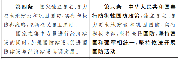 而中国人大网在公开修订草案全文的同时,还提供了国防法修订前后对照表,以黑体字标注出了对现行法进行增加或者修改的内容,方便公众查阅。