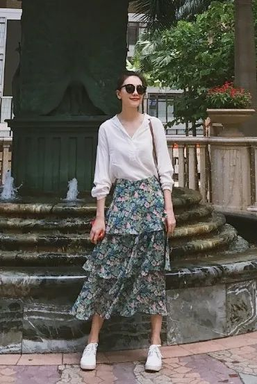 发现了吗?「国民女神」高圆圆的私服里面就很少出现紧身裤这个元素,下半身搭配大部分都是宽松的长裤或长裙👇