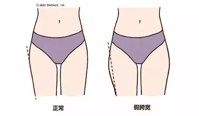 「真胯宽」的胯在骨盆外沿最高点,而「假胯宽」的胯在骨盆外沿靠下方。
