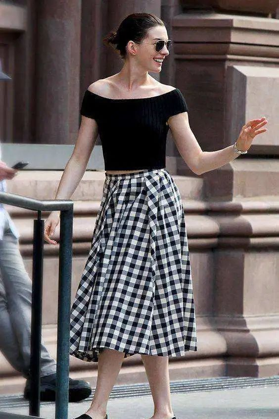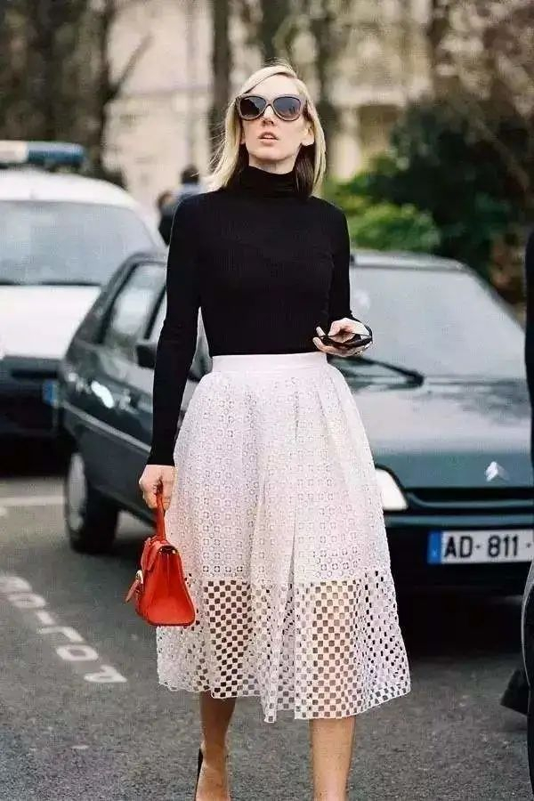 伞裙也有同样的效果,不仅能够很好地修饰胯部,同时对腿型的包容度也比裤装更高。