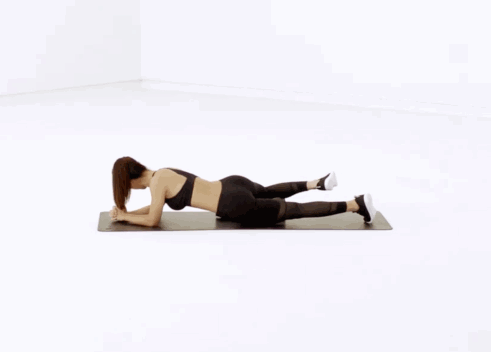 左臂枕于脑下,右手撑地但不用力头抬起,在两脚并拢、骨盆不发生旋转的情况的下,臀部发力使右腿展开膝盖到最大角度,保持 1 秒然后放下。