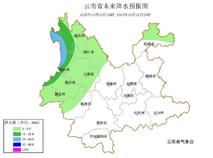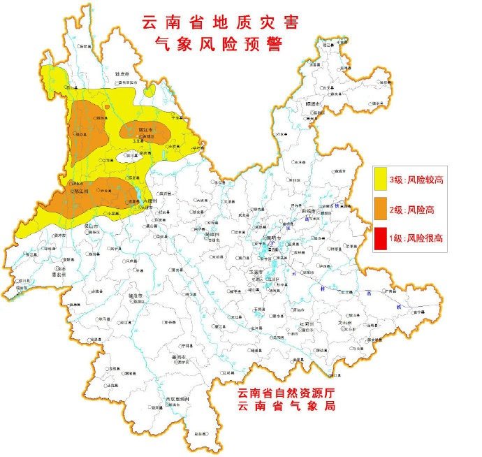 10月23日,云南省气象台发布地质灾害气象风险橙色预警,预计10月23日20时—24日20时,怒江、丽江、大理、德宏部分地区发生滑坡泥石流的风险高(橙色);迪庆、怒江、丽江、大理、德宏部分地区发生滑坡泥石流的风险较高(黄色)。