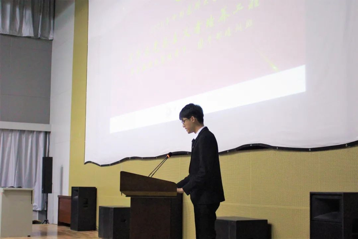 学员代表、临床二系刘展维同学发言。他代表全体学员庄严承诺,青马学子们将始终保持一颗激情澎湃的心,全面系统地学习马克思主义理论和方法,学会运用马克思主义立场和观点解决问题,坚定理想信念,增强道路自信、理论自信、制度自信、文化自信。争做马克思主义信仰坚定的大学生骨干、团干部精英,积极发挥“青马”学员引领示范作用,带动全体青年成长成才。