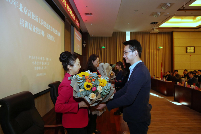 2020年北京高校新上岗思政课教师培训结业暨拜师宣誓仪式现场。北京市教育融媒体中心供图
