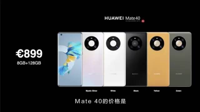 华为Mate40 8GB+128GB版本售价899欧元(约合人民币7102元);