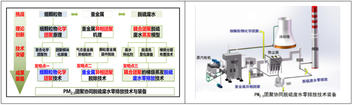 化石能源利用造成雾霾频发,对环境和人类健康造成了严重危害。煤燃烧PM2.5化学团聚技术是对传统物理除尘方式的颠覆创新,从本质上破解了PM2.5治理难题。团队发明的PM2.5化学团聚、重金属异相团聚以及耦合团聚的梯级蒸发脱硫废水零排放技术,对PM2.5、重金属以及脱硫废水等非常规污染物实现了经济高效一体化控制。该技术已在部分大型国有企业得到广泛应用,被央视等主流媒体称为“除尘治霾利器”。