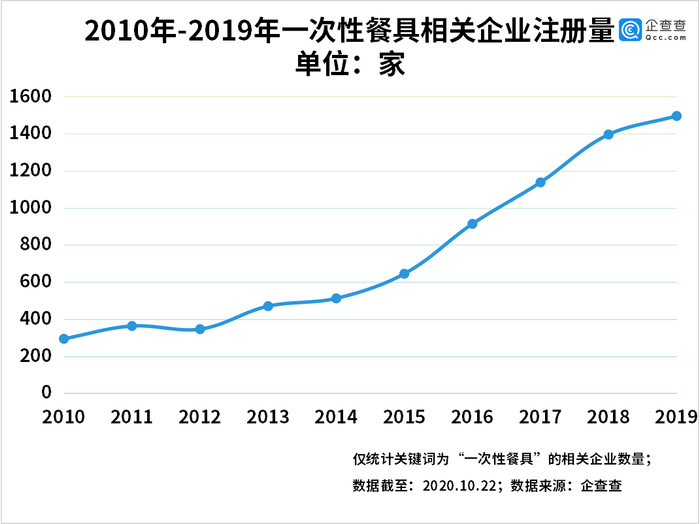 原标题:企查查数据:我国一次性餐具相关企业八千家,前三季增1209家