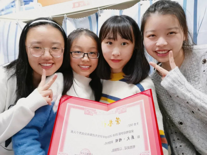 大连理工大学西山 9 舍 502 寝室,是电子信息与电气工程学部 2018 级自动化专业赵蓉、于欣萌、刘偲颖、方思雨四个女孩最温馨的“小窝”。在四人的齐心努力下,寝室卫生成绩连续两年取得满分,连续两年被评为校“千优寝室”。2019-2020 学年,寝室学习成绩均分达 89.6 分,其中赵蓉、于欣萌、方思雨 3 人获得国家奖学金,刘偲颖获得国家励志奖学金。自大一入学至今,四人共荣获国家省市校部各级奖励 93 项,获得学金类金额累计 5 万余元。