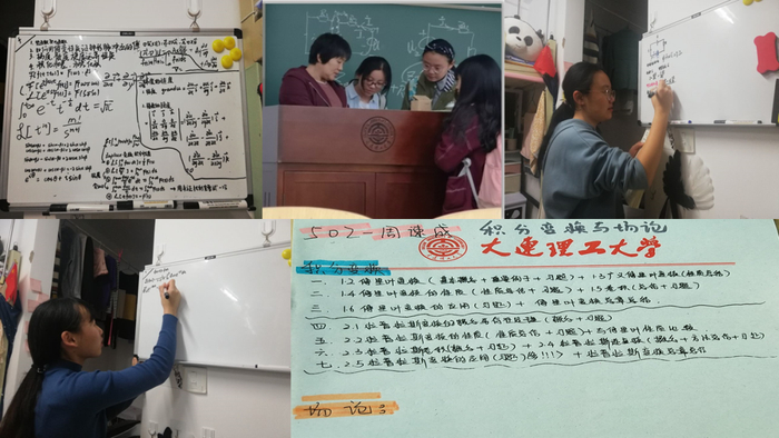 分享,是四个女孩踏步前行的动力源。从 2018 年入学起,她们就彼此分享学习资源,借鉴学习笔记,汇集学习经验。大二上学期,“ 502 小课堂”正式成立,为此,四人专门网购了一块课堂小白板挂在了寝室墙上。从此,小白板成了四个女孩答疑解惑、讨论交流的“法宝”。期末复习周,寝室四人分工明确,在寝室长的组织下,每个人都被分配到了需要为寝室集体讲解的备考内容:模电的差分电路,积分的拉普拉斯变换,大物的量子力学……功夫不负有心人,一个个重点难点在集体的智慧下变得清晰起来。