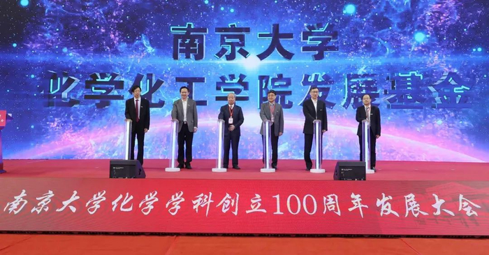 会上,设立了“南京大学化学化工学院发展基金”。郭子建院士,副校长邹亚军、张峻峰,校董会名誉董事长潘中来,黎书华院长,朱成建书记共同启动发展基金。