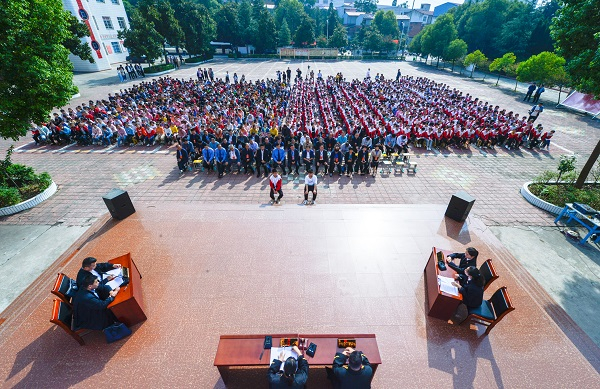 人大代表在上集镇中学观看普法剧《模拟法庭》。
