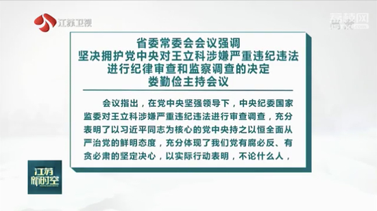 在王立科主动投案当晚,江苏省委书记娄勤俭就主持召开了省委常委会会议,通报王立科涉嫌严重违纪违法,主动投案,目前正接受中央纪委国家监委纪律审查和监察调查的情况。