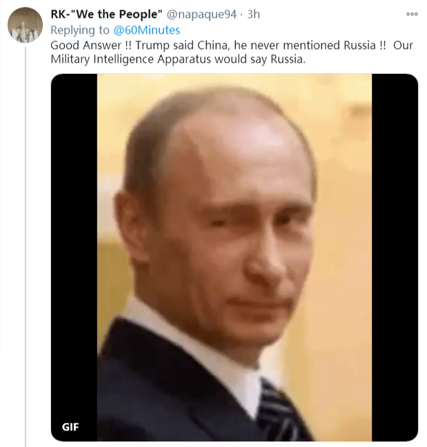 关于拜登将“威胁”矛头指向俄罗斯,而非中国,有网友就调侃说:“回答得好!!特朗普说是中国,他从来没提过俄罗斯!!我们的军事情报机构也会说是俄罗斯。”