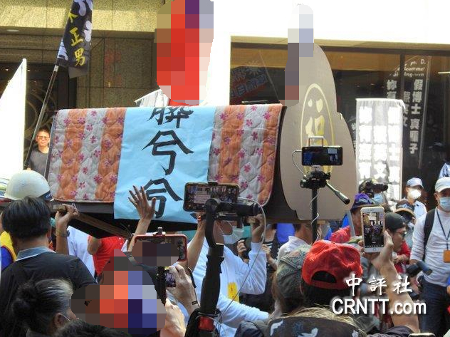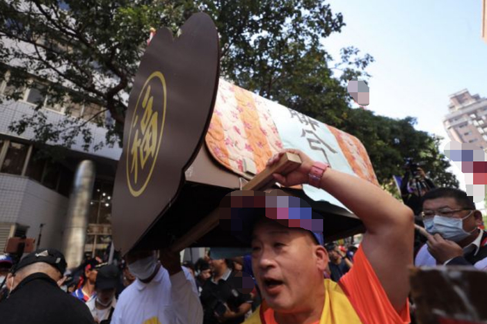 泛蓝媒体要被民进党关停?蓝营团体组织抗议,人群抬“棺材”上街