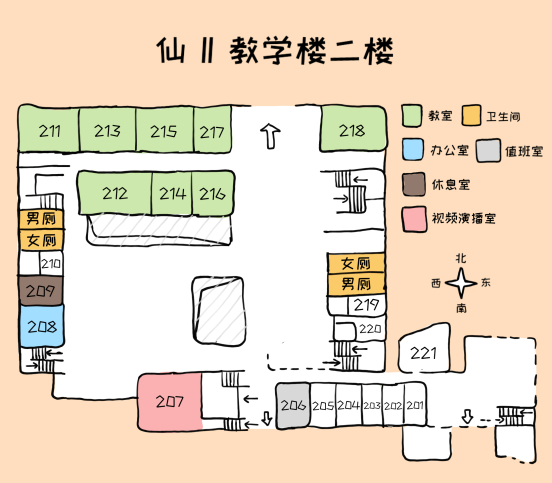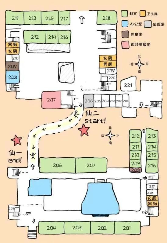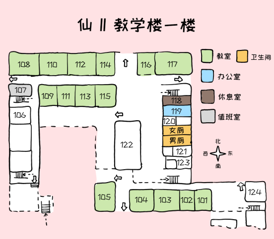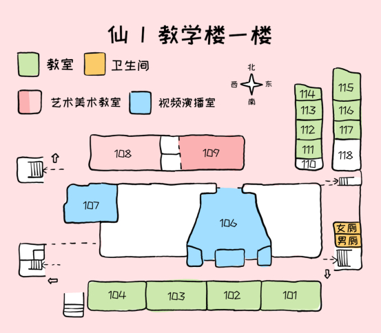 相比其他楼,仙一仙二的地形复杂程度要小得多,但对于一些同学来说依旧是迷宫般的存在,而每层楼附带的地图不仅难找也让路痴星人感到困惑,接下来就让我们借助手绘地图对这两栋楼的每层楼进行一个细致了解吧~