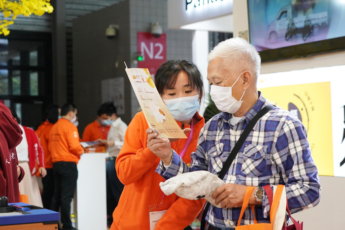 展会现场,工作人员正在为老年市民介绍适老产品(沈阳 摄)
