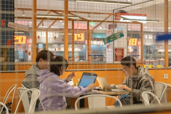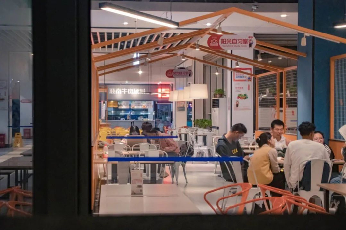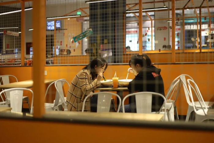 食堂里暖色的灯光点亮了夜晚