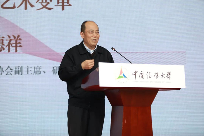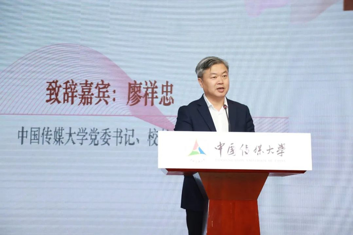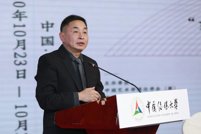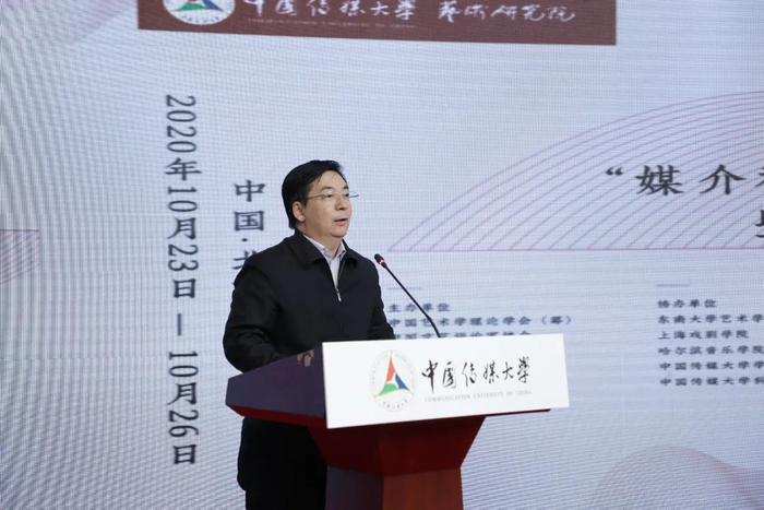 中国传媒大学党委书记、校长廖祥忠教授出席开幕式并致辞。廖祥忠书记表示,大会主题聚焦媒介与艺术如何更好地互动,从而影响人们的思想和精神,为凝聚国家力量、讲好中国故事提供新思路、探索新方法。他指出,在当前时代语境中,重新审视媒介变革与艺术的关系,是对当下社会发展和艺术境况的精准回应与判断。廖祥忠书记介绍了学校“双一流”学科建设的情况,对学校艺术学理论的学科建设提出殷切期望和要求,希望此次大会的召开对学科交叉与融合起到积极作用,为艺术学理论学科的发展增光添彩,也为艺术与传媒跨学科融合提供理论支撑,进一步拓展学校学科发展的深度和广度,推动艺术与传媒学科的优势互补、相得益彰。