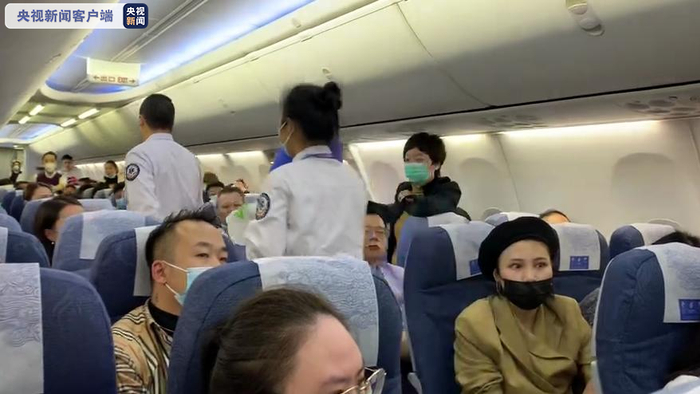 0时30分,医护人员登上飞机为乘客治疗。病人是一位中老年妇女,乘机位置在后半部分,尚能在医务人员搀扶下勉强行走,于0时40分下机。