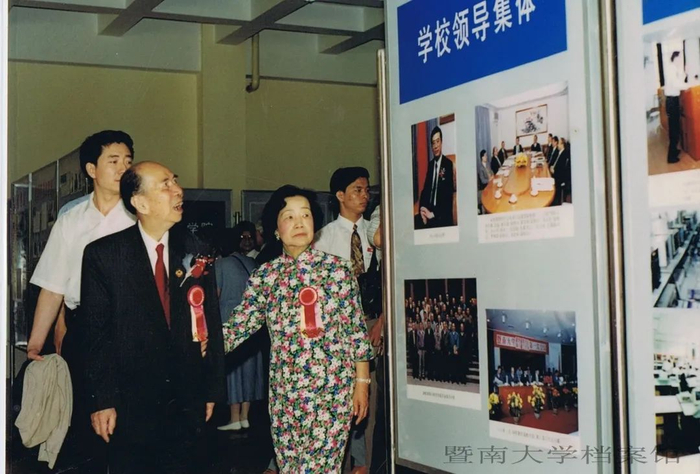 1996年,时任暨南大学副董事长马万祺与夫人参观暨大校庆90周年校史展览