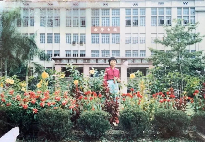 廖淑清在教学楼前的旧照