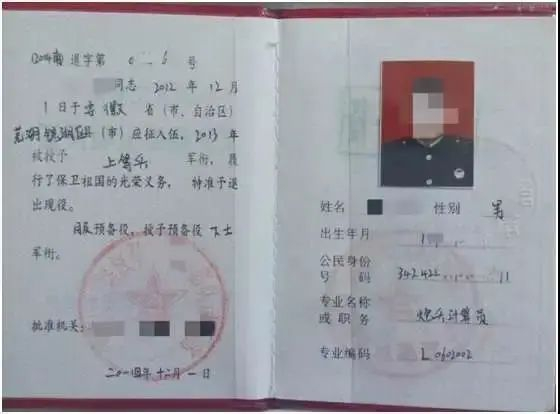 3.报考“退役大学生士兵专项计划”的考生,除上传“通用材料”、“考点特殊材料”外,还须上传本人《入伍批准书》和《退出现役证》原件照片。样图如下: