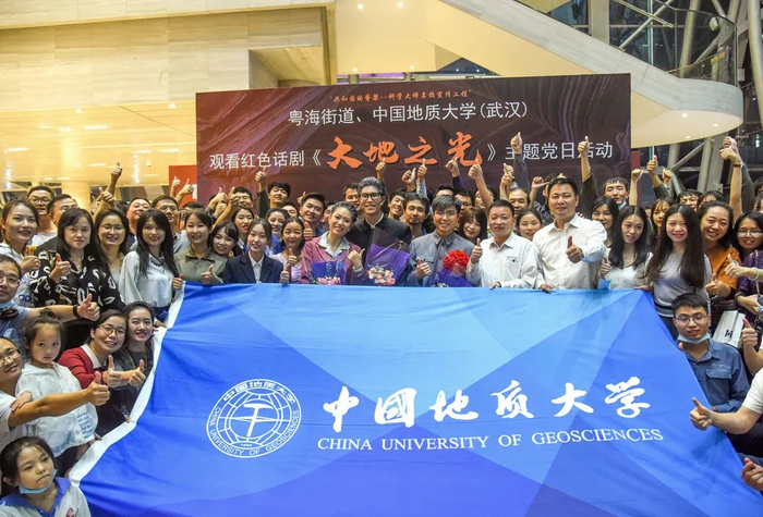 《大地之光》深圳演出,是向深圳经济特区建立40周年辉煌成就的致敬,是创新演出模式推动话剧走向社会的全新探索,更是发挥高校文化育人优势服务社区和企业党建的一次创新实践。《大地之光》历经9年,7地巡演,6代350余名学生更替,不仅成为一代代参演师生最深刻的精神洗礼和思想教育,更是赢得数万名师生、校友的共情、共鸣、共振,实现了李四光先生崇高品格的薪火相传,在中国地质科技领域乃至新中国科技界举起了一面大力弘扬科学家精神旗帜,成为学校创新思政育人、传播价值追求的一张亮丽名片。(文图:王紫璇)