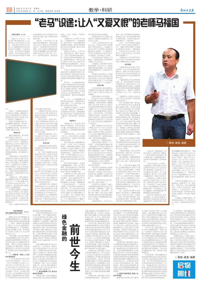 百年前的经济学家感动了马福国,马福国在课堂上将这种感动传递给了自己的学生。