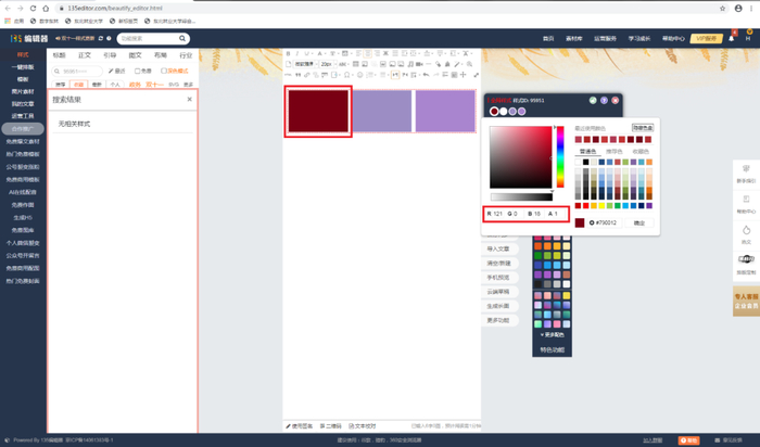 然后,我们在编辑器中选择色块,输入其特定的RGB值,就能得到我们想要的颜色。这样我们就得到了“枫叶红”色块。