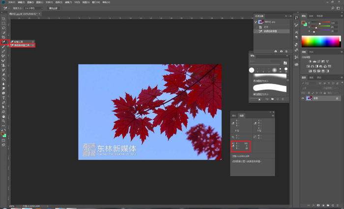 接着,为了准确地表现出不同的红色,我们要用ps提取出独特的红色,不同的红色会有不同的RGB值。提取方法:选择“颜色取样器工具”,点击需要取色的位置,最后记录对应的RGB值。