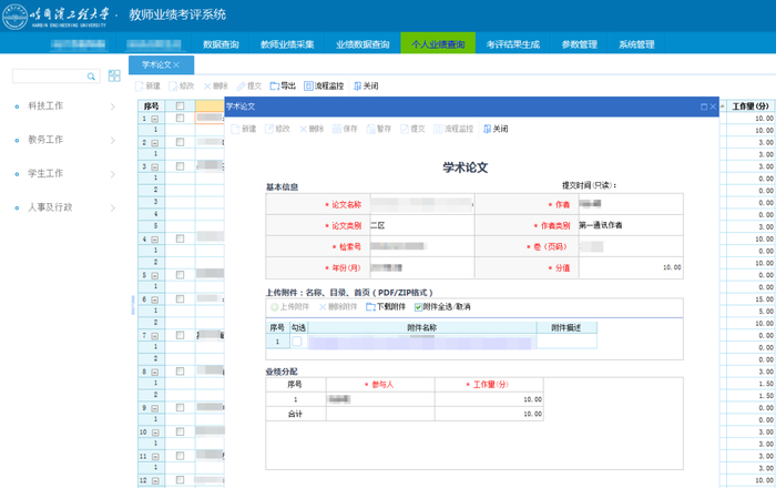正在建设的分散数据采集平台,为学校分散数据的采集、汇总、分析提供了高效可靠的信息化手段。即将投入使用的教师业绩考评表,具备已有教师业绩成果初始化及确认、新成果线上录入、工作量(分值)自动计算、考评结果自动统计汇总等功能,可根据学院对教师业绩考评的个性化需求,提供业绩成果表单定制开发、考评流程动态配置、成果填报结果自动校验等服务。