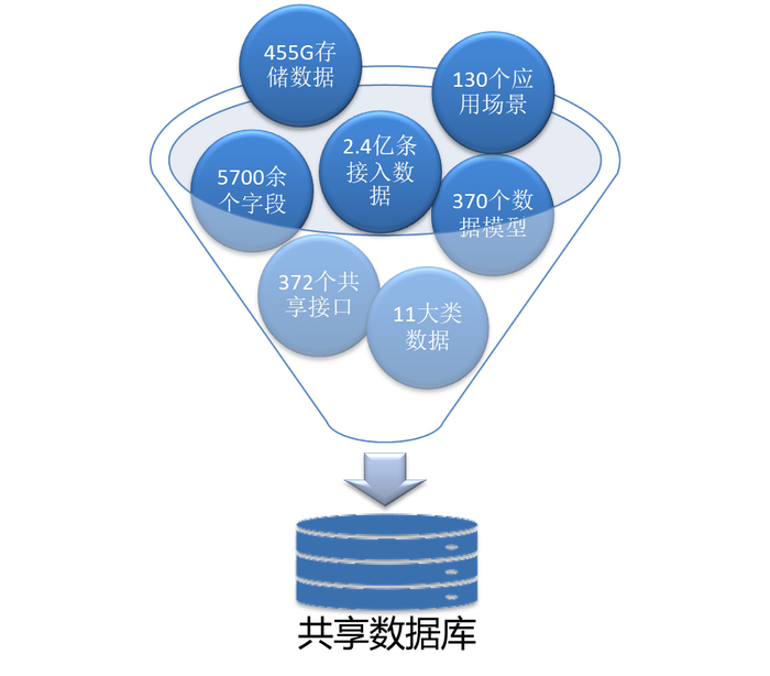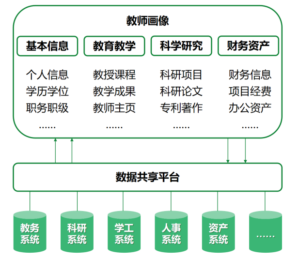 已建成的“一表通”共享数据库,整合了学校所有部门的12大数据系统,集合了11大类、56小类、253张数据表,涵盖数据字段5700余个、数据模型370个、存储数据455G、共享接口372个、接入数据2.4亿条、建设数据应用场景130余个。