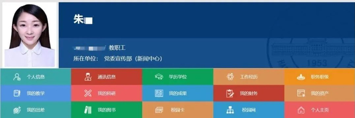 11月1日,学校师生个人数据中心正式上线运行,面向全校师生提供个人基本信息、学历学位信息、工作学习经历信息、职务职级信息、教学课程信息、科研成果信息、财务资产信息、公务出差信息、图书借阅信息、校园卡信息、校园卡信息、校园网信息、教师个人主页信息、学籍学历信息、成绩奖励信息、社会实践信息、助学资助信息等17类个人数据信息查询、使用服务。