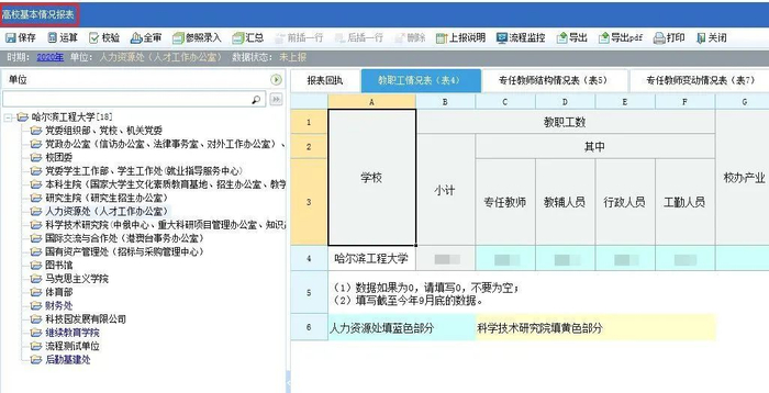 已投入使用的“一表通”的统计报表填报信息系统,可支撑学校统计数据报表的线上填报,目前已建设上线工信部“2020年部属高校基本情况表”、教育部“2020年高基表”,为24个部门提供85张报表、3000余个字段的在线协同填报、统计汇总、对比校验服务。