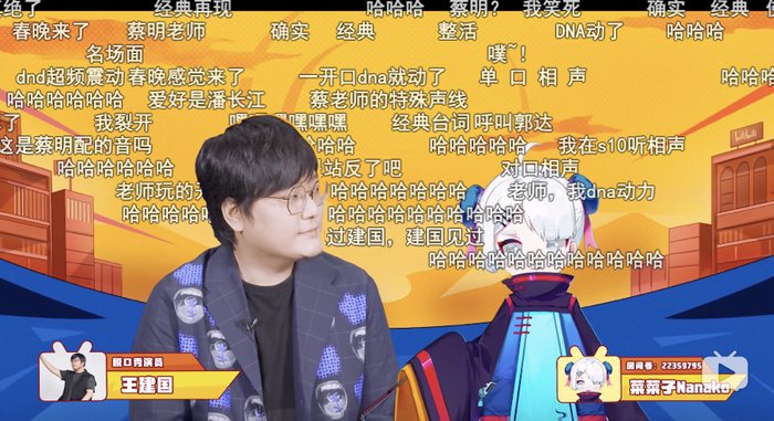 在B站独家策划的《高能观赛团》二路直播间中,超过60位嘉宾进行了为期21天的精彩跨区联动。其中不仅有英雄联盟职业解说、B站人气UP主及主播,还有彭昱畅、赖美云、管栎、《说唱新世代》选手等明星嘉宾组成“高能观赛团”,与观众们一同观战。与此同时,虚拟主播也首次亮相电竞赛事直播间,其中还上演了人气虚拟主播“菜菜子”与脱口秀演员王建国的欢乐“对口相声”,让不少用户表示“名场面”、“春晚的感觉来了”。