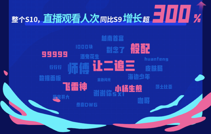 截至决赛当晚,B站S10整体赛事的直播观看人次同比S9提升超300%。这一数据的大幅增长,意味着B站已成为用户观看电竞赛事直播的首选平台。而由赛事衍生出的一系列趣味弹幕,如“99999”、“让二追三”、“小杨生煎”、“飞雷神”等,不仅极大提升了观众的参与感与观看体验,也已成为游戏电竞文化的重要组成部分。