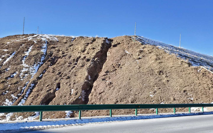 2019年12月10日,109国道日月山路段接近巫保土垭豁的一处土坡上,马生珍的遗骸从这里被挖出来。新京报记者 李云蝶 摄