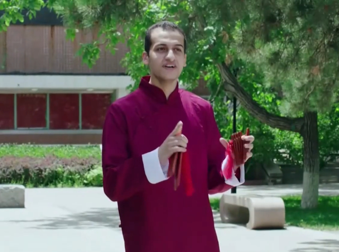一席红色唐装,流利的中文伴随着快板朗朗上口,“进取崇德亦弘道,经世致用共发展,桃李天下领风骚。”在中传2020云毕业典礼上,高博毅表演了快板《我爱中传CUC》,用节奏明快的中国传统曲艺,代表人文学院全体国际生表达了对中国的热爱和对中传的热爱。