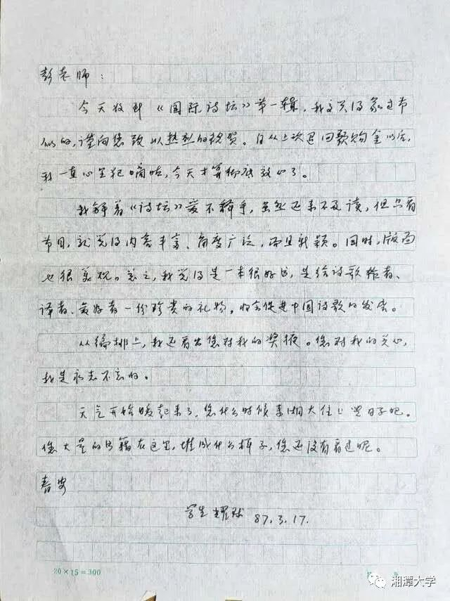 彭燕郊先生1920年9月出生于福建莆田,10多岁时离开家乡参加新四军,在严酷与苦难中淬炼成颇有影响的“七月派”诗人。他1939年开始发表作品,其诗歌创作跨越了中国新诗发展最重要的几个时期。彭燕郊先生在诗歌创作和研究、编辑出版、民间文学、教育等诸多方面取得了杰出的成就,赢得了文学界和文化界的广泛敬重。1950年,彭燕郊应湖南大学之邀来到湖南, 先后在湖南大学、湖南师范学院(今湖南师范大学)中文系任教。1955年因“胡风案”牵连入狱,1979年到湘潭大学中文系任教至1987年退休。2008年3月31日逝世于长沙。在湖南的58年里,彭燕郊先生在这片热土上播下诗歌的种子、美的种子,极大地影响了几代湖湘文化人。