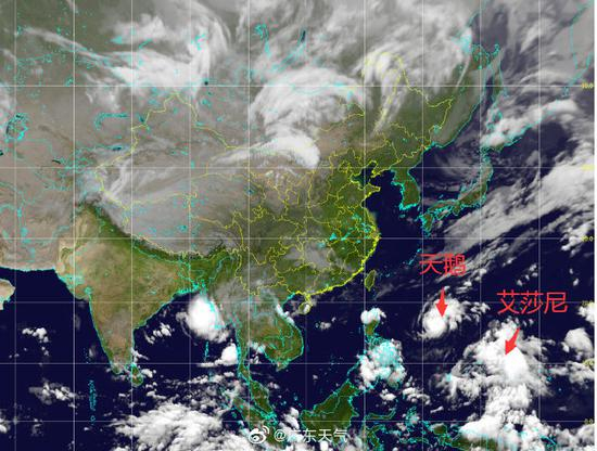 相比陆地天气的平稳,海上的台风则热闹多了,双台风争相斗艳。