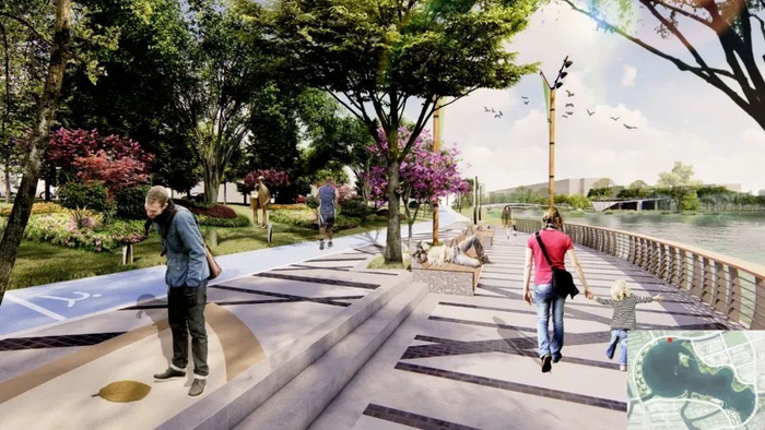 结合每一个主题区段融入各具特色的景观设计元素,有花阶坡道、观景平台、亲水步道、悦动舞台、景石雕塑、临水驿站等等。赛艇、皮划艇、龙舟、游艇等水上体育运动项目也精彩纷呈,多元化的功能满足从孩子到老人,居民到研发人员,创业者到大学生的各种休闲娱乐需求,这把“钥匙”必将开启紫竹的健康新生活。