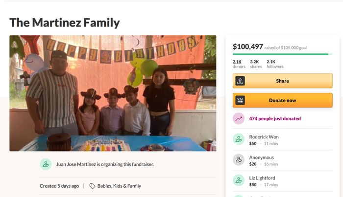 截止美国君发稿前,胡安已经筹到了100497刀,他在众筹网站上写道:“我向妈妈保证过,我会好好照顾兄弟姐妹们。”