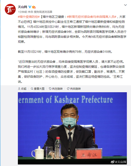 原标题:喀什地区卫健委:新增无症状感染者均来自隔离人员,大家不必恐慌