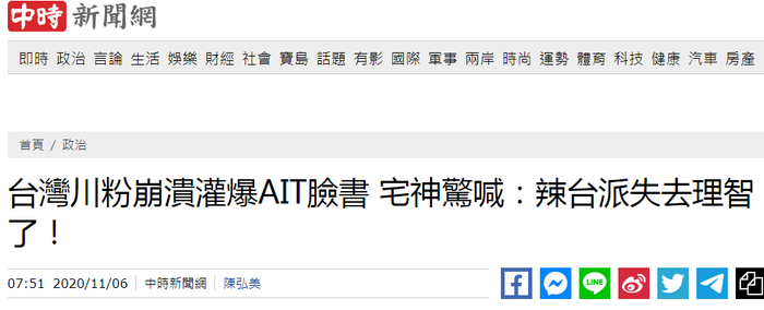 中时电子报也注意到,“台湾川粉”4日一度相当兴奋,绿营侧翼粉丝专页发了许多帖文表示祝贺,“焦糖哥哥”甚至说出“川普海外谢票首站不来台湾说得过去吗”这种话。殊不知选情一夜变色,“台湾川粉”超级尴尬。不少网友嘲讽说,“还要美国总统来谢票?好大的官威啊”“台派真把台湾当美国的一州了”。高雄中山大学政治研究所教授廖达琪披露称,蔡英文上任后与民主党及拜登交情较浅,现在很担心押错宝,因此上周六那场“国安高层会议”相信也在寻找联系拜登的窗口。