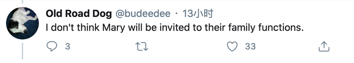 也有人表示,“我觉得玛丽不会被邀请参加家族聚会。”↓