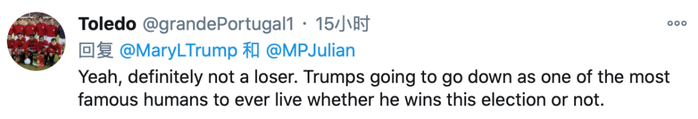 玛丽·特朗普的言论也引起推特网友的讨论,有人留言支持她:“是的,她说得对。”↓