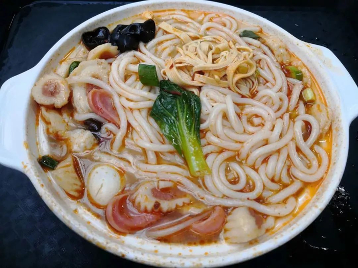青理食堂之大,可谓无奇不有。在这里,全国各地的美食都能可见一斑,无论青理学子来自何方,都能在这里找到属于家乡的味道。米线,是我国具有悠久历史的传统食品,是南方数省人们经常食用的米制品。其口感细腻,爽口嫩滑,有着大米清香。在青理的食堂中,与米线相伴的,总是鲜美的汤汁。色泽金黄汤汁,香气扑鼻,几片碧绿青菜和鲜红火腿肠点缀其上,俨然将色香味发挥到了极致。正是这样的美味,让离乡在外的学子们在寒冷冬季感受到了家的温暖,让这份来自胃的暖意也逐渐蔓延到了心间。
