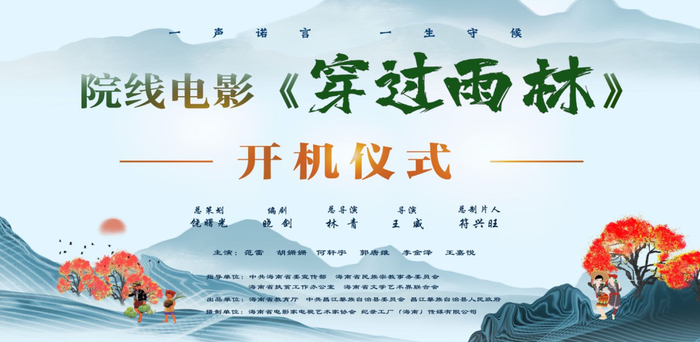 11月6日下午,海南扶贫题材电影《穿过雨林》在昌江黎族自治县七叉镇大仍村小学(旧学校)举行开机仪式,这也是海南首部以描写黎族山区教育移民扶贫为主题的院线电影。
