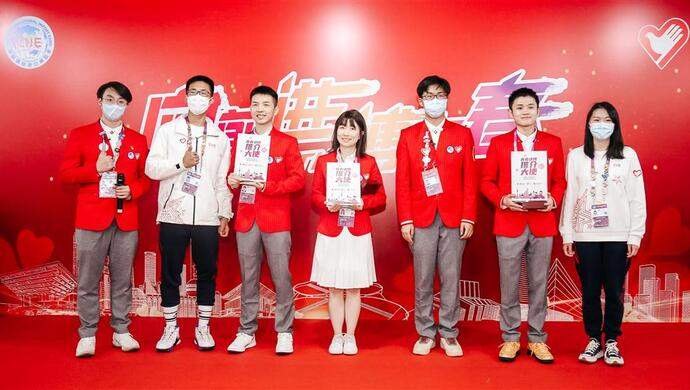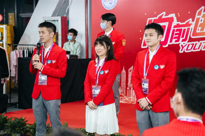 除了王勉,11月6日下午,脱口秀演员NORAH、豆豆也都穿着“小叶子”的红西装,以“进博青春推介大使”的身份“空降”进博会志愿者之家,他们相继登上“梦想舞台”,跟“小叶子”们进行青春对话。