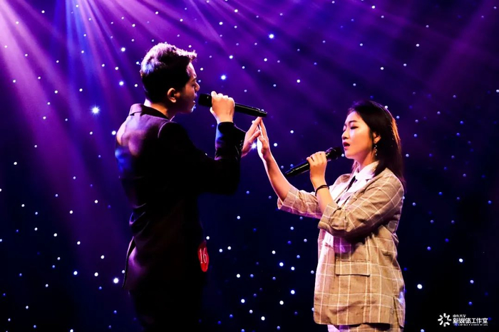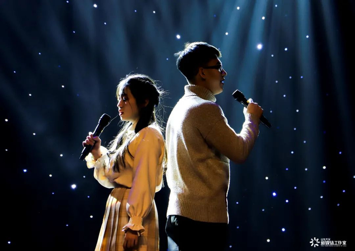 两位选手独树一帜的清唱开场让人眼前一亮,两人的歌声可谓是林籁泉韵。女生婉转悠扬,男生铿锵有力。高音戛然而止,大有“间关莺语花底滑,幽咽泉流冰下难。冰泉冷涩弦凝绝,凝绝不通声暂歇”之势。